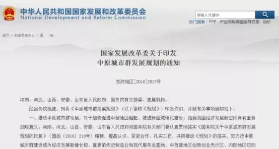 2017年1月5日,國(guó)家發(fā)改委印發(fā)通知,明確了中原城市群發(fā)展規(guī)劃的重大工程項(xiàng)目。項(xiàng)目以“鐵公基”為主,在未來5年內(nèi)逐漸開工。隨著這些基建工程的鋪開,沿線城市群的城區(qū)改造、商品房建設(shè)工程,自然是水漲船高的。